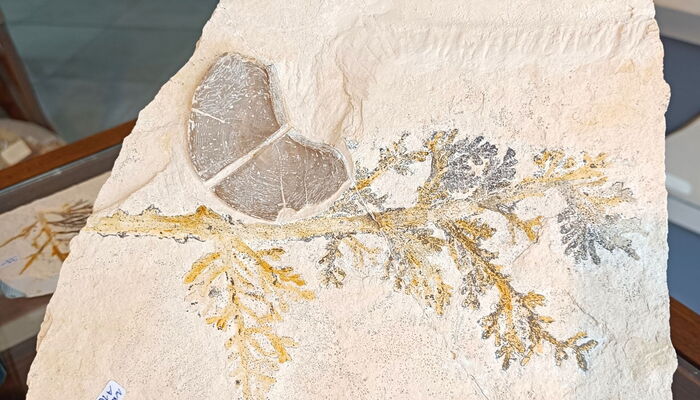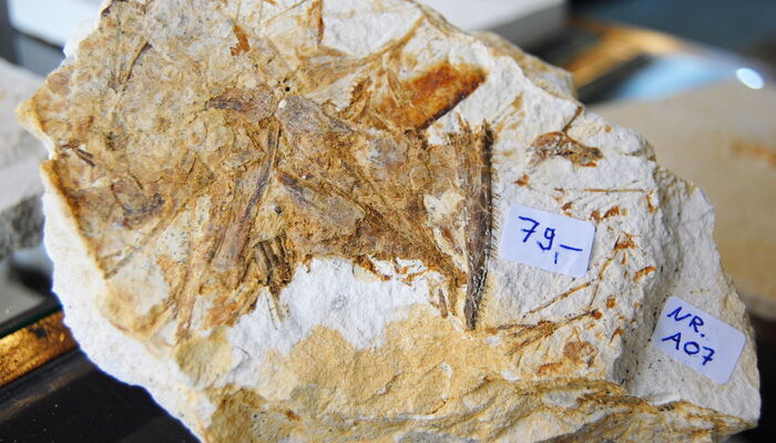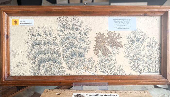 Manganoxid-Dendriten auf Solnhofener Plattenkalk Nr. A36