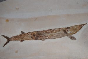Riesiger Schnabelfisch, Jura, Malm Zeta 3, Fundort Mörnsheimer Schichten, Obb., Länge des Fossils über 75 cm! Eingesetzt in Trägerplatte (ca. max. 110 cm x ca. max. 76 cm, Stärke ca. 1,3 cm) mit div. Ammoniten. Standardversand per Post nicht möglich! Absoluter Hingucker!