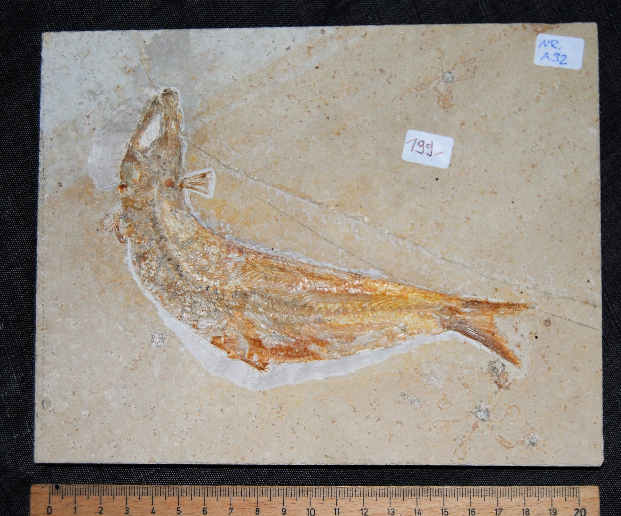 Tharsis dubius Alter: ca. 144 Mio. Jahre, Ob. Jura, Malm, Tithon Zeta 3, Altmühlformation, Fundort: Mühlheim, Lkrs. Eichstätt. Gewicht ca. 11555 g., Platte ca. 21,4 x 16,7 x 1,3 cm.