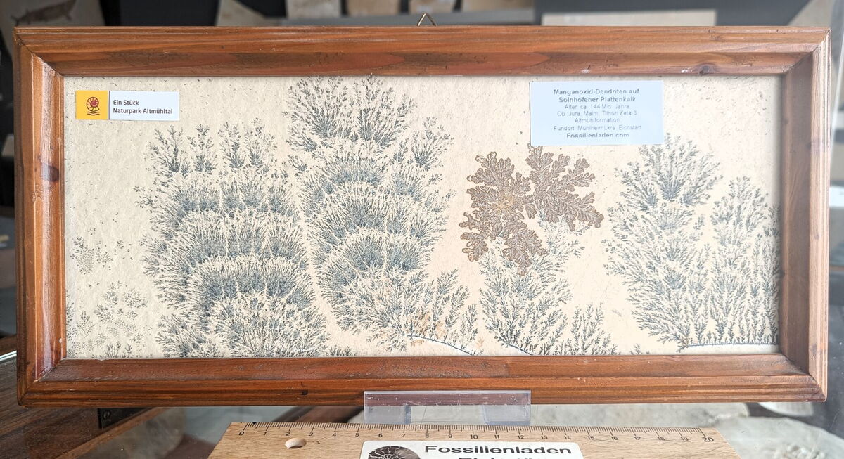 Manganoxid-Dendriten auf Solnhofener Plattenkalk Nr. A36