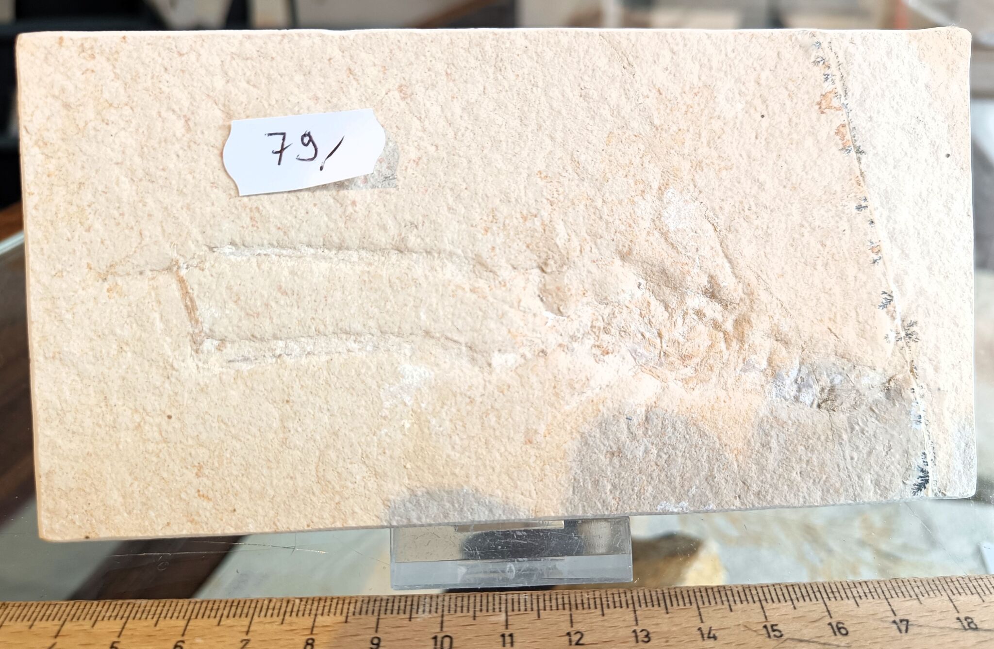 Günstiger Mecochirus longimanatus! Fundort: Solnhofen, Jura, Malm zeta , Alter ca. 147 Mio. Jahre. Gewicht ca. 570 gr. Plattenstärke ca. 1,8 cm, Platte ca. 16 x 8 cm Länge Krebs max. ca. 13,5 cm